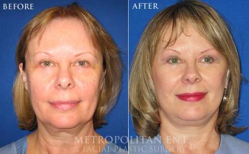 The face lift is a general term for a procedure to reduce larger wrinkles in the patients face. There are many different types of face lifts that depend on the depth of the dissection. These procedures are typically performed using heavy sedation or in a hospital setting using general anesthesia. One would be best served to have a whole week off work. In selected cases the results can be rather dramatic. The doctors at Metropolitan ENT have a particular focus on preventing patients from having a post surgical look.